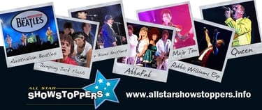 All Star Showstoppers is the exclusive Management & Booking service for Australia’s best international tribute shows, including: Queen Freddie, GET BACK with The Beatles, Jumping Jack Flash – Rolling Stones Tribute, Robbie Williams Experience, The Australian Blues Brothers & Soul Sisters, AbbaFab, & Major Tom the David Bowie Show.